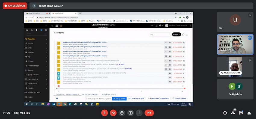 Uşak Üniversitesi Personel Daire Başkanlığı Hizmet İçi Eğitim Şube Müdürlüğü tarafından "EBYS (Elektronik Belge Sistemi Yönetimi) Sistem Kullanımı" konulu online eğitim gerçekleştirildi.