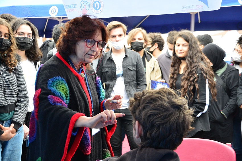 Proje hakkında bilgi veren proje yürütücüsü İktisadi ve İdari Bilimler Fakültesi Öğretim Üyesi Dr. Gülten Demiral projenin amacının, iş hayatına yakınlaşan lisans ve kalıcı öğrenmenin yüksek düzeyde olduğu lise ve orta öğretim düzeyindeki öğrencilerin, yeni teknolojik ekipmanlarla, teknoloji kullanıcısı şirketlerle ve bu alanlardaki gelişmelerle tanışmalarını sağlamak olduğunu belirtti. Demiral, “Proje, bilimsel bilginin görsel paylaşımlarla sunulduğu paneller ve atölye çalışmalarının yapıldığı stantlardan, teknolojinin üretimde kullanımını bizzat yerinde inceleme amaçlı teknik şirket gezilerinden oluştu. Stantlarda sunulan etkileşimli etkinlikler yoluyla, katılımcıları “yapan-yaşayan-paylaşan” konumuna getirmek ve farklı konularda gerçekleştirilen gözlem ve uygulamalarla katılımcılara disiplinler arası bir bakış açısı kazandırmayı amaçladık. Bu bağlamda üç gün süren bilim şenliğimizde, Uşak İlinde farklı disiplinlerden atölye çalışmaları, gösteri deneyleri, sahne şovları, bilimsel söyleşiler yapıldı. Başta Rektörümüz Prof. Dr. Ekrem Savaş olmak üzere destek veren, katkı sunan herkese teşekkür ediyorum.” dedi.