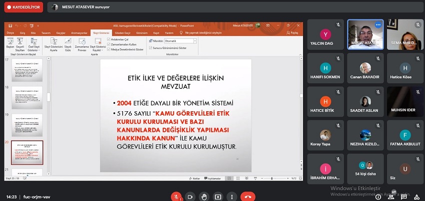 Uşak Üniversitesi Personel Daire Başkanlığı Hizmet İçi Eğitim Şube Müdürlüğü tarafından, "Kamu Görevlileri Etik Davranış Kuralları" konulu online eğitim gerçekleştirildi.