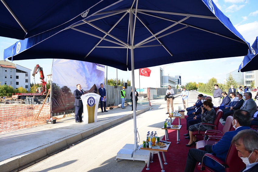 Konuşmaların ardından kurban kesilerek dua okundu ve Uşak Üniversitesi Deri, Tekstil ve Seramik Tasarım Uygulama ve Araştırma Merkezi binasının temeli atıldı.