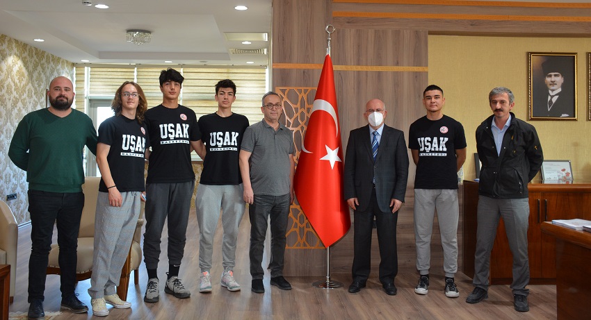 Rektörlük makamında gerçekleşen ziyarette, İlkler Şehri Uşak Basketbol Spor Kulübü Yönetim Kurulu Başkanı Ayhan Aslan, Yönetim Kurulu Üyesi Mustafa Kahraman, Baş Antrenör Görkem Kaymak ve kulübün Uşaklı oyuncuları yer aldı.