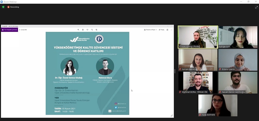 Yükseköğretim Kalite Kurulu (YÖKAK) Öğrenci Komisyonu tarafından 27-28 Ekim 2021 tarihlerinde çevrimiçi “Öğrenciler Süreçlere Katılıyor, Yükseköğretimde Kalite Güvencesi Güçleniyor: Öğrenci Toplulukları Çalıştayı” gerçekleştirildi.
