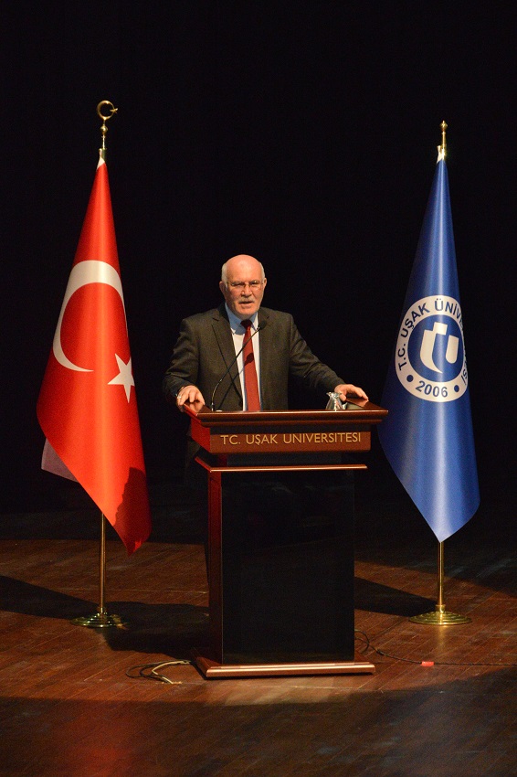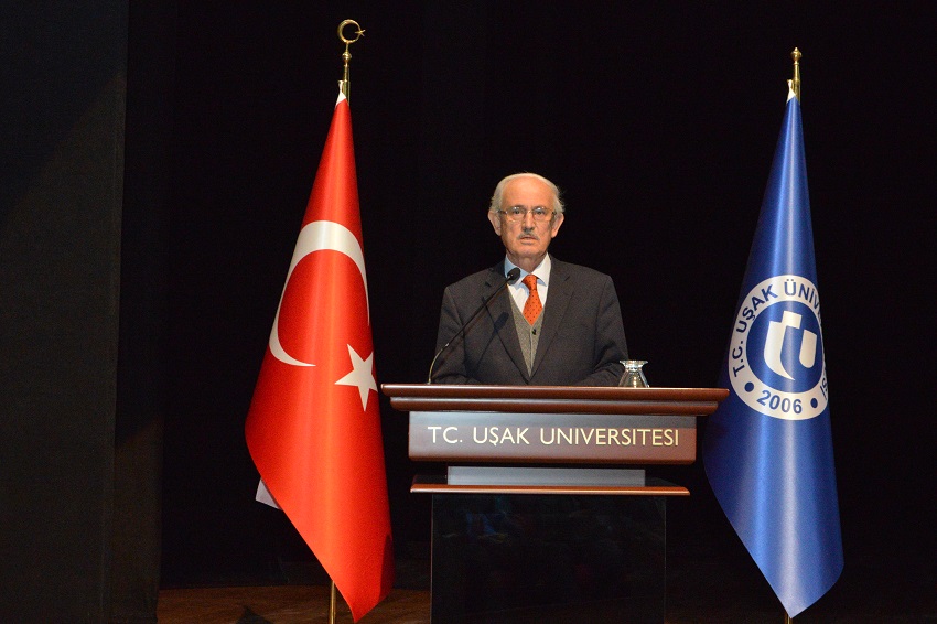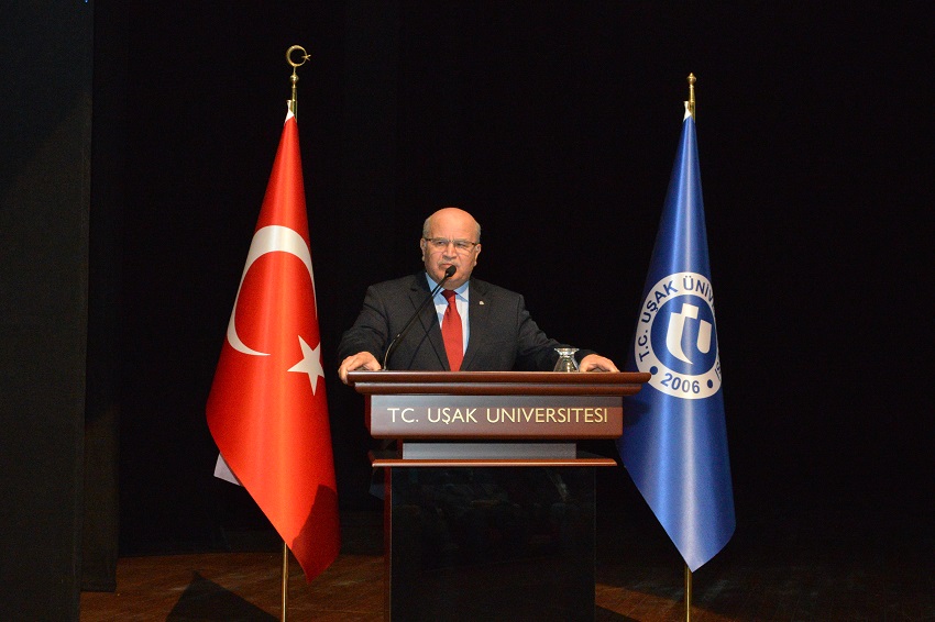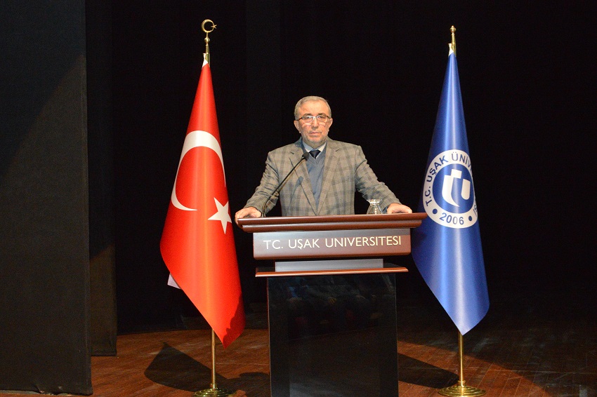 Uşak Üniversitesi İslami İlimler Fakültesi Dekanı Prof. Dr. Ali Yılmaz yaptığı konuşmada, İstiklal Marşımızdaki “Bu ezanlar ki şehadeti dinin temeli ebedi yurdumun üstünde benim inlemeli” dizesini hatırlatarak, ezan ve bayrağın önemine vurgu yaptı. Ezanın, İslam’ın şiarı olduğunu belirten Yılmaz “Ezan sesi kulakların açılması, ruhların coşması, gönüllerin ferah bulması için bir vesiledir. Allah ebedi olarak yurdumuzun üstünde bu ezan seslerini indirmesin.” dedi.