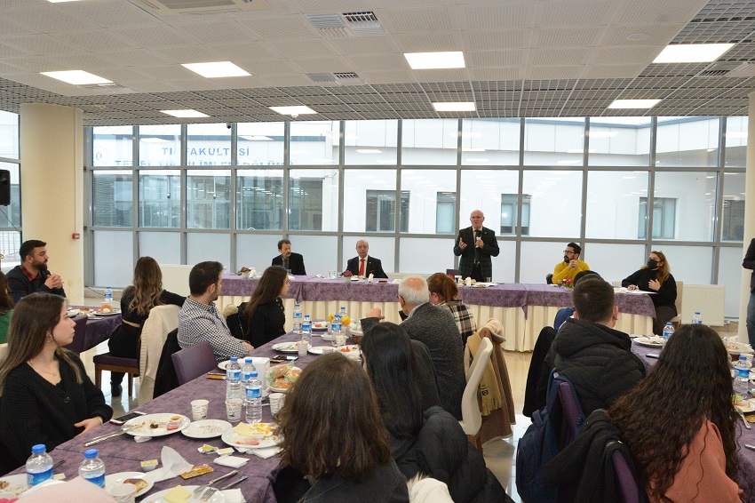 Uşak Üniversitesi Sağlık, Kültür ve Spor Daire Başkanlığı tarafından “Rektör-Öğrenci Toplulukları Buluşması” gerçekleştirildi. Rektör Prof. Dr. Ekrem Savaş, öğrenci toplulukları danışmanı akademisyenler ve topluluk başkanı öğrenciler ile Öğrenci Yaşam Merkezi alanındaki yemekhanede bir araya geldi.