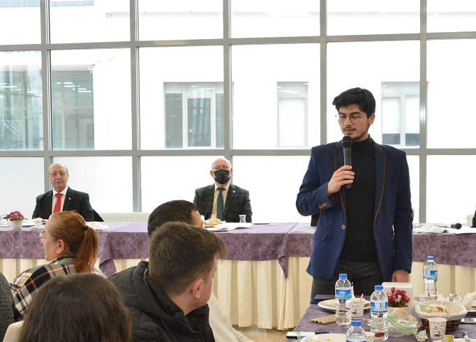 Rektör Prof. Dr. Ekrem Savaş’ın konuşmasının ardından yeni seçilen Öğrenci Konseyi Başkanı Diş Hekimliği Fakültesi 4. Sınıf öğrencisi Muhammet Basir Kutlu, konsey olarak yeni dönemde yapacakları çalışmalar hakkında bilgi verdi.
