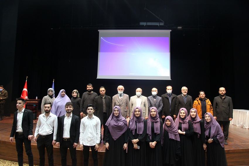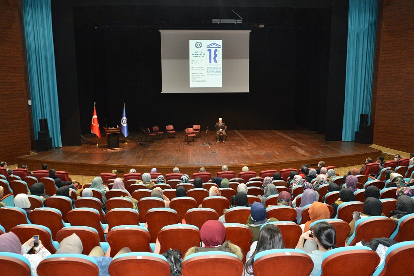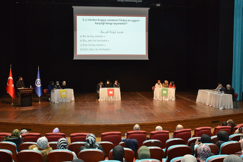 Recep Tayyip Erdoğan Kongre ve Kültür Merkezindeki toplantıda açılış konuşması yapan Rektör Yardımcısı Prof. Dr. İsmail Hakkı Nakilcioğlu, “Kur’an-ı Kerim, bilindiği gibi, Arapça indirilmiştir. Yüce kitabımızda “Anlayabilesiniz diye biz onu Arapça bir Kur’an olarak indirdik” buyruluyor. Kur’an-ı Kerim her yönüyle, başlı başına mucize bir kitaptır, Allah kelâmıdır. Kur’an’ın Arapça indirilmesi boşuna değildir. İslâm dünyasında da Arapça yüzyıllar boyu bir uygarlık dili olarak kullanılmıştır. Milletimiz Kur’an’a olan saygısından dolayı Arapça metinle yazılmış herhangi bir kâğıdı bile öpüp başına koyar. O kâğıtta ne yazdığı önemli değildir, onun hürmeti, Kur’an’ın Arapça yazılmış olmasından doğan saygıdandır. Etkinliği düzenleyen İslami İlimler Fakültemize teşekkür ediyorum. Programa katkı sağlayan Hazırlık Sınıfı öğrencilerimizi de tebrik ediyorum.” şeklinde konuştu.