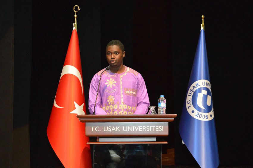 Afrikalı Öğrenciler Topluluğu Başkanı Mühendislik Fakültesi Öğrencisi Samba Diallo ise yaptığı konuşmada Afrika ve Afrika kültürü hakkında bilgi verdi. Uşak’ta ve Uşak Üniversitesi’nde bulunmaktan dolayı mutlu olduklarını belirten Diallo, başta Rektör Prof. Dr. Ekrem Savaş olmak üzere, tüm Uşak Üniversitesi personeline ve Uşak’taki tüm kurumlara teşekkür etti.