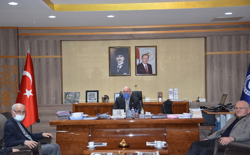 İslami İlimler Fakültesi Danışma Kurulu Üyeleri Rektör Prof. Dr. Ekrem Savaş’ı makamında ziyaret etti.