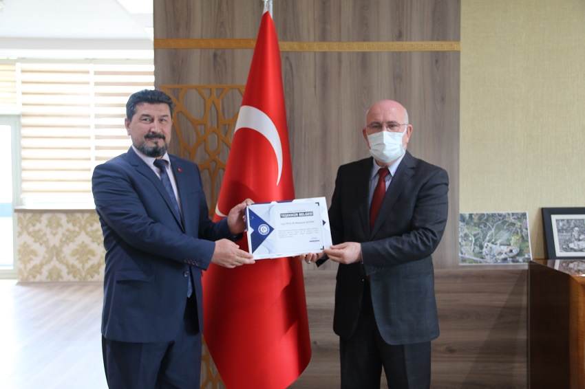 Rektör Prof. Dr. Ekrem Savaş, görevini başarıyla ifa eden Prof. Dr. Altınay’a teşekkür belgesi takdim ederek, bugüne kadar yaptığı çalışmalardan dolayı teşekkür etti.