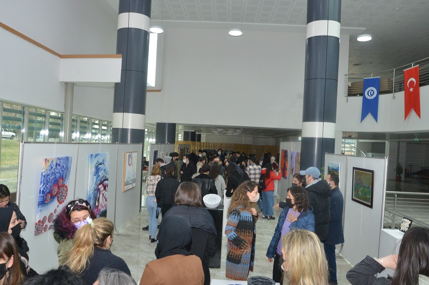 Sergi açılışında konuşan Dekan Prof. Dr. İncilay Yurdakul ise Sanatın, bir büyük ‘S’ ile başlayan ve dünya yaşamını etkileyen en büyük olgulardan birisi olduğu sözünü hatırlatarak, “Sanat yaşamımızı planladı, yaşamımızı kurguladı, hayal dünyamızı yeniden yarattı ve dünyadaki bütün değişimlerin bir öngörüsünü sundu. Bugün, burada sadece sanatı değil aynı zamanda sanatın yanında tasarımı da göreceksiniz. Bugün artık sanat ve tasarım kavramlarını birbirinden ayırmak mümkün değil yan yana koşuyorlar ve hayatımızı yeniden şekillendiriyorlar. Son söz olarak ‘Dünyayı sanat kurtaracak diyorum. Tüm emeği geçenlere teşekkür ediyorum.” ifadelerini kullandı. Açılış konuşmalarının ardından sanatseverler sergiyi gezerek, eserler hakkında bilgi aldı. Resimden, seramiğe, moda tasarımından geleneksel el sanatlarına; güzel sanatlar alanlarından 29 öğretim elemanının katılımıyla gerçekleştirilen “Sanatın Değerleri” adlı sergi, 29 Mart-8 Nisan 2022 tarihleri arasında sanatseverlerin ziyaretine açık olacak.