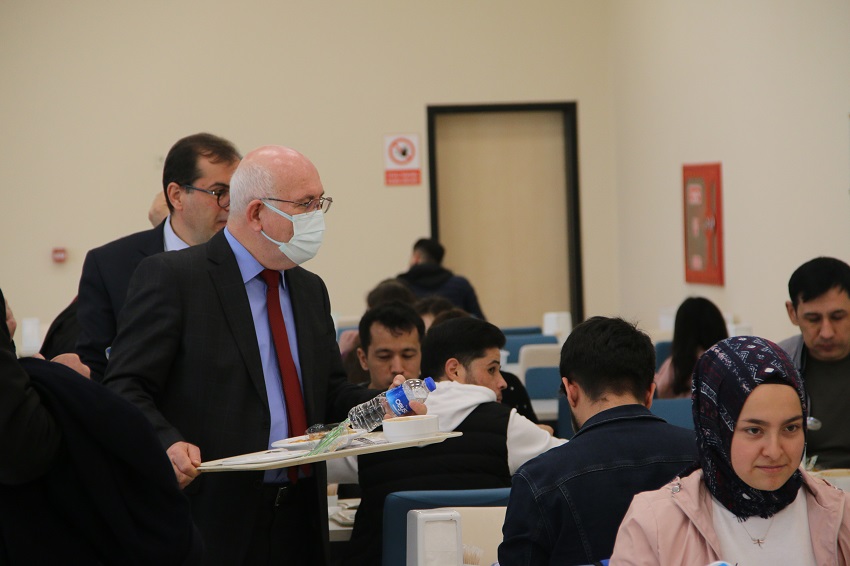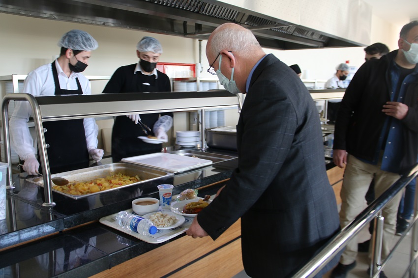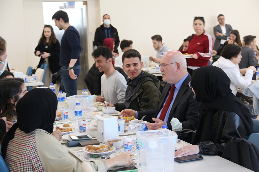Geçtiğimiz aylarda ISO 22000:2018 Gıda Güvenliği Yönetim Sistemi sertifikasını aldıklarını sözlerine ekleyen Rektör Savaş, “Yemekhanemizdeki her süreç, kalite standartları çerçevesinde gerçekleştirilmektedir. Öğrencilerimizin en iyi hizmeti almaları için çalışıyoruz. Uşak Üniversitesi olarak öğrencilerimize en makul fiyata, sağlıklı, temiz ve en iyi yemek hizmetini sunduğumuzu söyleyebilirim. Öğrencilerimiz sohbetimizde, sunulan hizmetin kalitesinden de oldukça memnun olduklarını ifade ettiler. Biz öğrencilerimizle bir araya geldiğimiz etkinlikler yaparak onların sorun ve önerilerini dinliyoruz. Öğrenci topluluklarımız ve Öğrenci Konseyimiz de bize öğrencilerimizin isteklerini iletiyor. Ayrıca öğrencilerimizin benimle direkt irtibata geçebilmelerini sağlayan ‘Rektöre Yaz’ uygulamasını başlattık. İsteyen her öğrencimiz bizimle iletişime geçebilir. Yaptığımız çalışmaların her zaman daha iyisini yapmak istiyoruz. Elbette eksikliklerimiz olacaktır. Bunu da doğru ve etkili iletişimle, anlayışla gidereceğiz. Yemek saatlerinde yeni bir düzenlemeye gidiyoruz. İftar saatlerini göz önünde bulundurarak Ramazan Ayı boyunca akşam yemeği saatini 20.30'a kadar uzattık. Şimdiden Ramazan Ayının verdiği bereketin iftar sofralarınıza tаt ve huzur getirmesi dileğiyle. Hayırlı Ramazanlar dilerim.” ifadelerini kullandı.