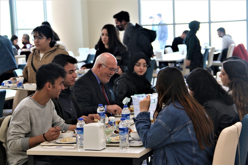 Uşak Üniversitesi Rektörü Prof. Dr. Ekrem Savaş, 2021-2022 eğitim-öğretim yılı başında hizmete giren Öğrenci Yaşam Merkezinde öğrencilerle öğle yemeğinde bir araya geldi. Öğrencilere yemek boyunca eşlik eden Rektör Savaş, öğrencilerin görüş, istek ve önerilerini dinledi.