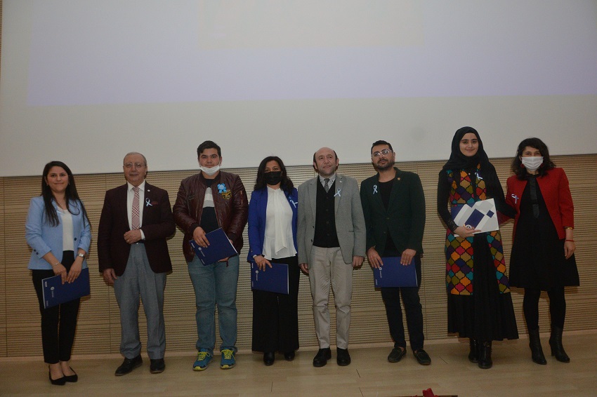 2 Nisan’da başlayan “Otizm Farkındalık Ayı” çerçevesinde dünyada otizmle ilgili araştırmaların teşvik edilmesi ve bu konudaki farkındalığın artırılmasıyla, erken teşhis ve eğitim hizmetlerinin yaygınlaştırılmasıyla ilgili bilgilerin verildiği etkinlikte Eğitim Fakültesi Özel Eğitim Bölümü’nden Dr. Öğr. Üyesi Üzeyir Emre Kıyak “Otizm Nedir?” ve Dr. Öğr. Üyesi R. Nalan Ayvazoğlu “Toplumsal Yaşamda Otizmli Yetişkinler” başlıklı sunumlarını yaptı. Etkinlikte ayrıca otizmli birey Muhammet Çağrı Ayva ile söyleşi, fuaye alanında öğrencilerin hazırladığı panoya el izi bırakma etkinliği ve yine öğrencilerin konuya dikkat çekmek için hazırladıkları hatıra hediyelerin dağıtımı yapıldı ve öğretim materyalleri sergilendi.