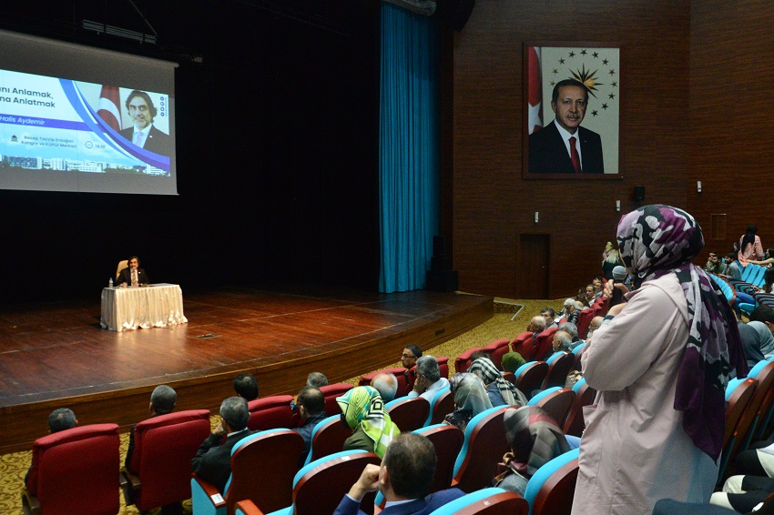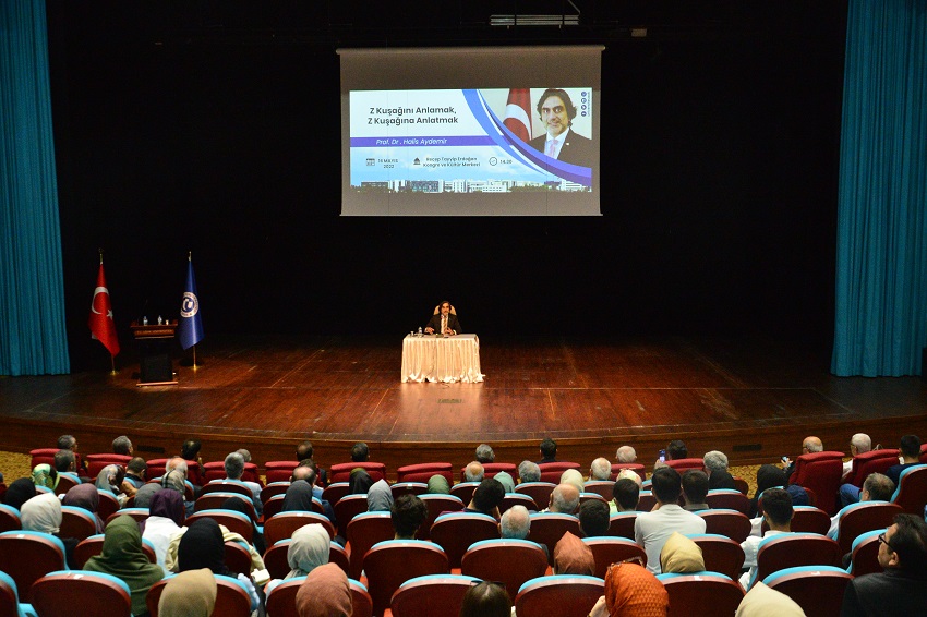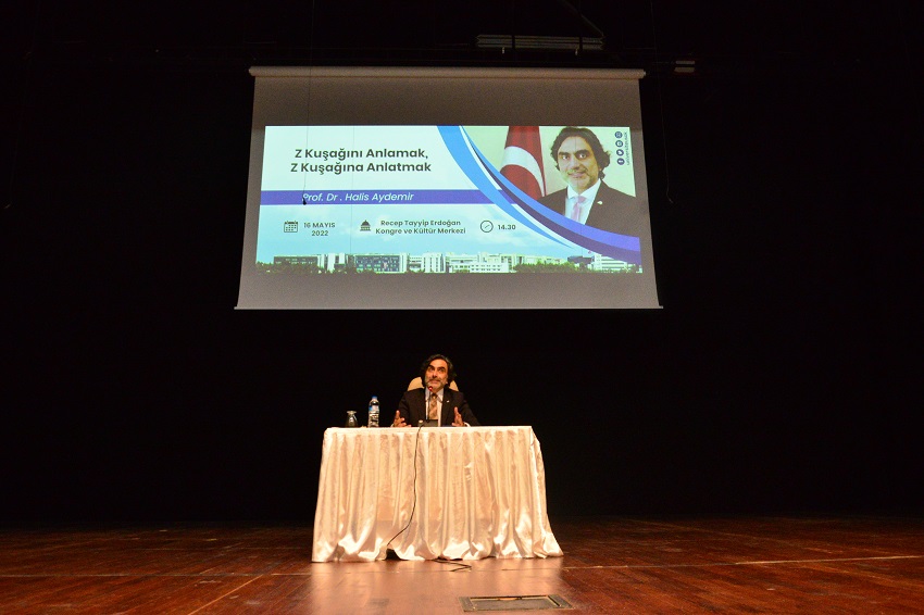 Günümüzde insanların çeşitli etkilere maruz kaldığının altını çizen Prof. Dr. Halis Aydemir, “İnsanlar bir fıtrata sahiptir ve bununla doğruyu bulabilir. Eğer insanı tanımlayabilirsek Z kuşağını ve ondan sonraki kuşakları anlayabiliriz. Dışarıdan gelen iyi ya da kötü bilgiyi akledebilen yüreklerde ‘Hak’ üstün gelecektir” ifadelerini kullandı.
