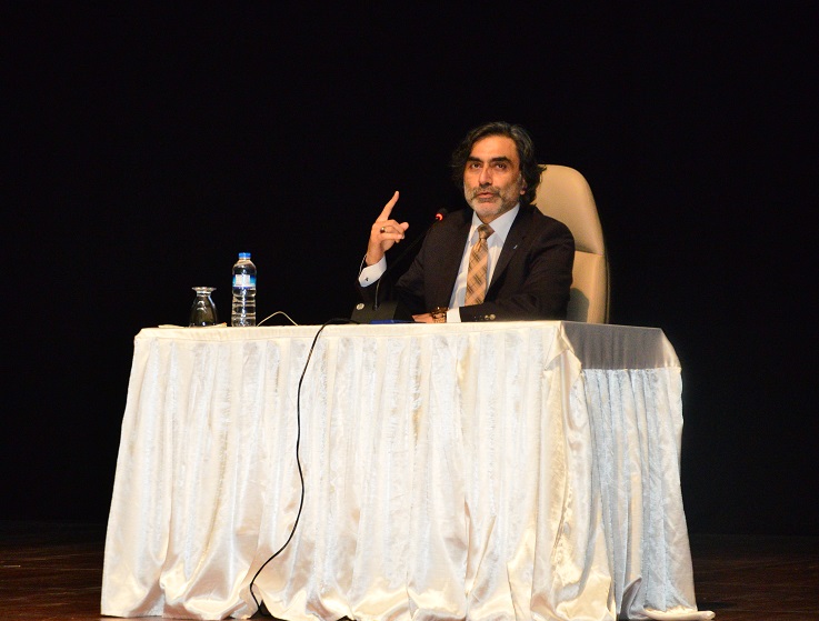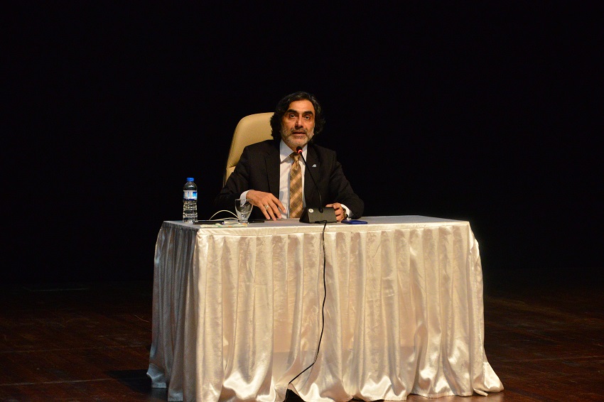 Prof. Dr. Kenan Taş, öğrencilerimizin kültürel gelişmeleri açısından her ay düzenli olarak kıymetli konuşmacıları Uşak Üniversitesinde ağırladıklarını belirterek Prof. Dr. Halis Aydemir’e etkinliğe katılımından dolayı teşekkür etti. Bir matematikçi olarak, Prof. Dr. Aydemir’in “Miras Taksimi-Kur’an’da Hata Yok” ve “Simetrik Kitap Kur’an; Eşsiz ve İlahi Matematiksel Tasarım” adlı eserlerini okuduğunu aktaran Prof. Dr. Taş “Kitapları okuduğumda, Kur’an ayetlerinde anlatılanların sayısal bir muhakeme ile ele alındığını ve sözel ifadelerin çok sayıda koşullu cebirsel denklemleri içinde barındırdığını öğrendim. Sayın Aydemir’in anlatacaklarının herkes için kıymetli olduğunu düşünüyorum.”dedi.