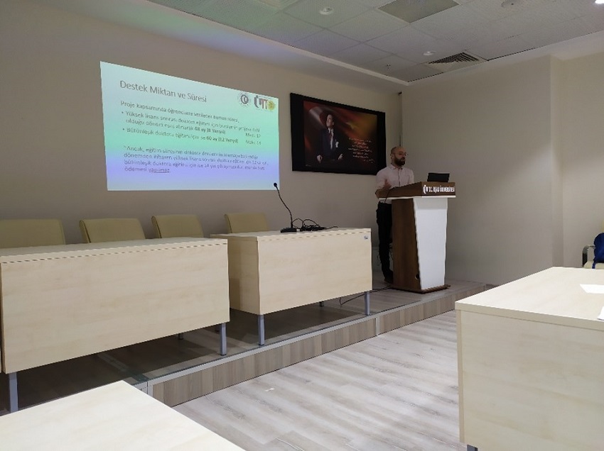 Etkinliğin ikinci bölümünde ise UTTO Proje Destek Birimi Öğretim Görevlisi Dr. Gülşah Başkan tarafından, TÜBİTAK 2209-A Üniversite Öğrencileri Araştırma Projeleri Destekleme Programı ve TÜBİTAK 2209-B Üniversite Öğrencileri Sanayiye Yönelik Araştırma Projeleri Destekleme Programları tanıtılarak, destek miktarı, başvuru koşulları, proje ekibinin oluşturulması, başvuru esnasında gerekli belgeler ve proje değerlendirme kriterleri hakkında bilgilendirme yapıldı.