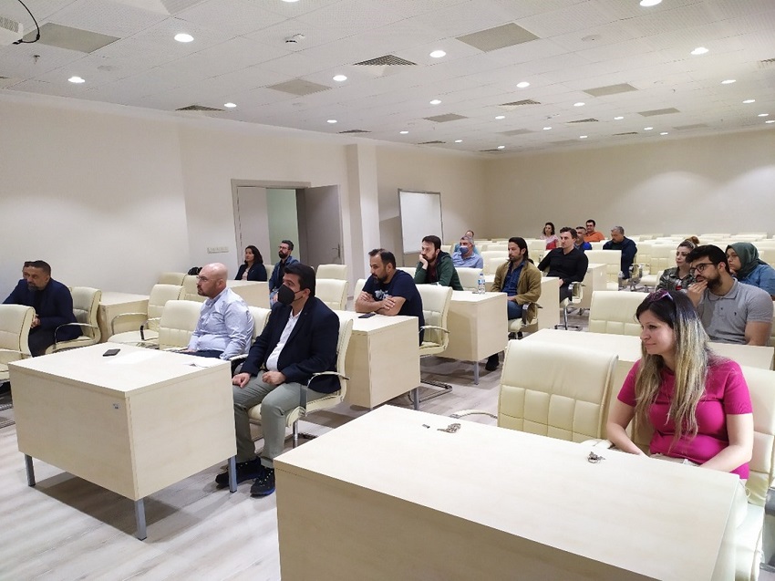 Etkinliğin birinci bölümünde UTTO Üniversite-Sanayi İşbirliği Birimi Öğretim Görevlisi Fatih Yalçın, TÜBİTAK 2244-Sanayi Doktora Programının tanıtımını yaparak; başvuru süreçleri, uygulama esasları, destek süresi, miktarı ve firmalarla gerçekleştirilecek iş birliği modelleri hakkında bilgi verdi.