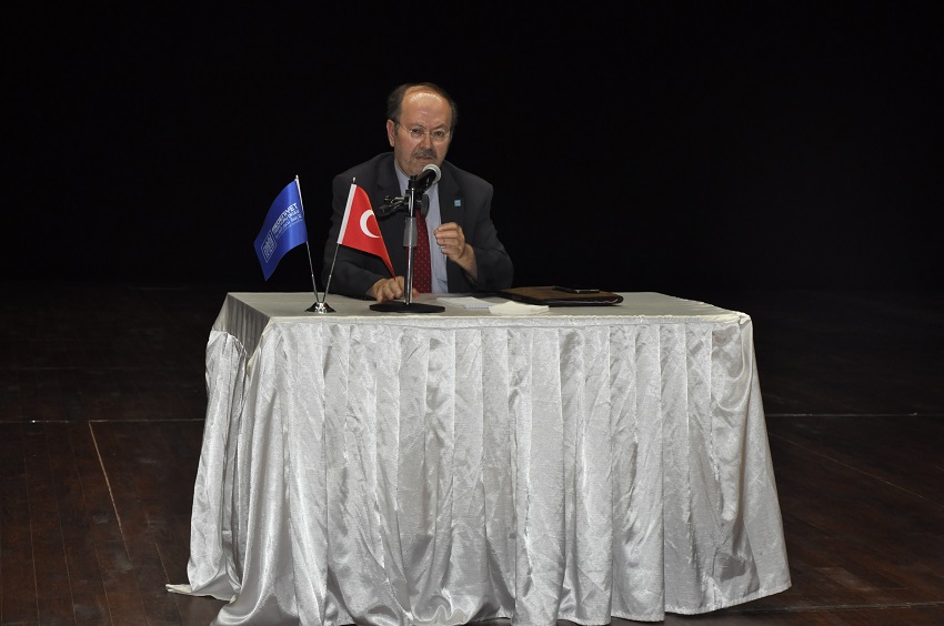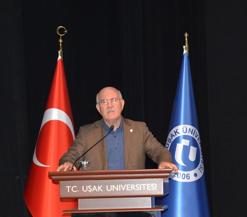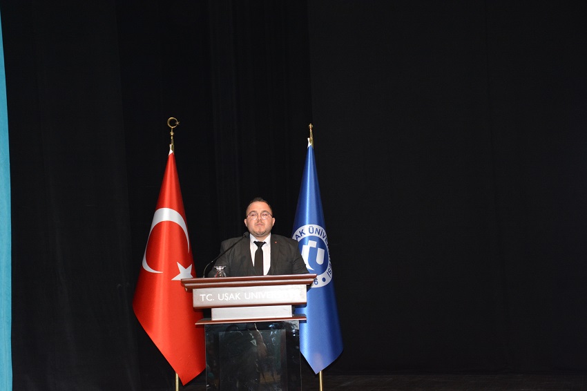Konferansın açılış konuşmasında Rektör Prof. Dr. Ekrem Savaş, “Bu salon birçok konuşmacıya ev sahipliği yaptı. Bundan 15 gün önce Halis Aydemir hocamızı burada ağırladık, gençlerle bir araya getirdik. Bugün de Yusuf Kaplan’la gençlerimizi bir araya getirdik. Uşak Üniversitesi olarak hemen hemen her ay bir düşünür, bir fikir adamı ile öğrencilerimizi buluşturmaya çalışıyoruz. Etkinliğe katkısı olanlara ve Yusuf Kaplan’a teşekkür ediyorum.’’ şeklinde konuştu.
