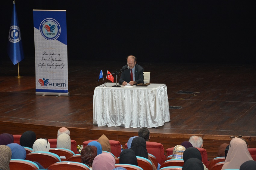Etkinlik İslami İlimler Fakültesi öğrencisi Melih Mehmet Çetinkaya’nın Kur’an-ı Kerim tilaveti ile başladı. Kur’an-ı Kerim tilavetinin ardından konuşan ADEM Topluluğu Başkanı İslami İlimler Fakültesi öğrencisi Mustafa Çetin, topluluğunun insanlık için iyilik meşalesi sloganıyla; zamanın gençlere yüklemiş olduğu sorumluluğun bilinciyle, adalet, ehliyet, eminlik, duyarlılık, kardeşlik, hoşgörü, iyilik, barış, sevgi, paylaşma ve dayanışma temelinde uzun soluklu kutlu bir yürüyüşü, tarihinden aldığı mirasla bugün sürdürmeyi ve yarına taşımayı gaye edindiğini belirterek topluluk olarak düzenledikleri konferansa konuşmacı olarak katılan Yusuf Kaplan’a teşekkür etti.
