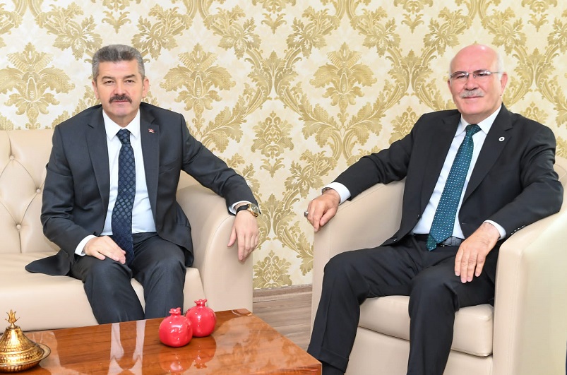 Uşak Valisi Dr. Turan Ergün, Uşak Üniversitesi Rektörü Prof. Dr. Ekrem Savaş’a iade-i ziyarette bulundu. Vali Yardımcısı Eyüp Fırat, Rektör Yardımcıları Prof. Dr. Murat Mustafa Öntuğ ve Prof. Dr. Kenan Taş’ın da hazır bulunduğu ziyarette, Rektör Ekrem Savaş, Vali Dr. Turan Ergün’e Uşak Üniversitesi hakkında bilgilendirme yaparak, kurumlar arası işbirliğinin arttırılması ve müştereken yürütülebilecek projelere ilişkin bilgiler verdi.