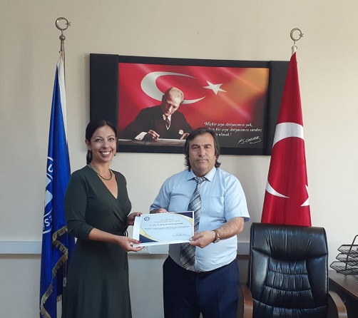 Konferanstan sonra Uşak Üniversitesi İİBF Dekanı Nihat Batmaz’ı ziyaret eden Goularas’a Batmaz tarafından bir teşekkür belgesi takdim edildi.