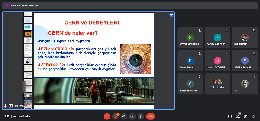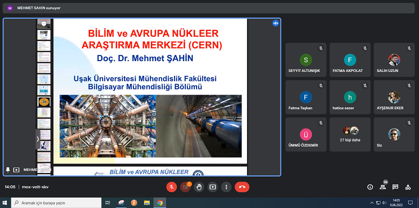 Uşak Üniversitesi Enerji, Çevre ve Sürdürülebilirlik Uygulama ve Araştırma Merkezi Müdürlüğü ve Fen ve Teknoloji Eğitimi Topluluğu tarafından çevrimiçi “Bilim ve Avrupa Nükleer Araştırma Merkezi (CERN)” konulu konferans gerçekleştirildi.
