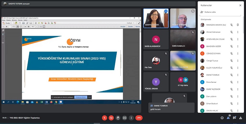 Eğitimde Sınav Organizasyon Koordinatörü Prof. Dr. Sadiye Tutsak tarafından, Bina Sınav Sorumluları ve Bina Sınav Sorumlusu Yardımcılarına yönelik, 2022 YKS Sınavı ile ilgili sınav öncesi, sınav günü ve sonrasında alınacak tedbirler ve önlemler ile ilgili bilgi verildi.