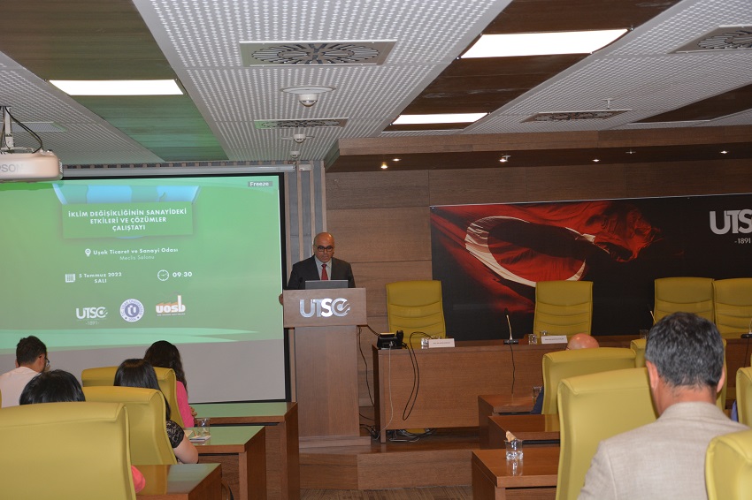 Uşak Üniversitesi tarafından ve Uşak Ticaret ve Sanayi Odası (UTSO) ile Uşak Organize Sanayi Bölgesi işbirliğiyle “İklim Değişikliğinin Sanayideki Etkileri ve Çözümleri” çalıştayı gerçekleştirildi.