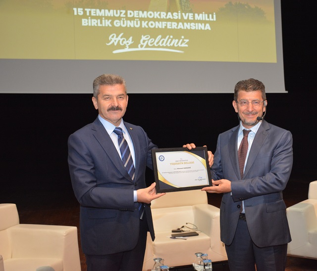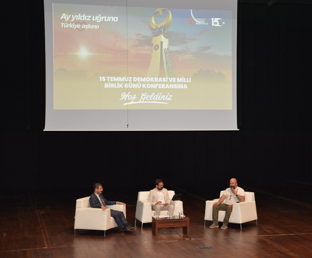 Açılış konuşmasının ardından Moderatörlüğünü Kurumsal İletişim Koordinatörü ve İletişim Fakültesi Öğretim Üyesi Dr. Emre Vadi Balcı’nın yaptığı konferansta Himmet Karadağ ve Metin Doğan, 15 Temmuz gecesi verilen milli mücadeleyi aktararak yaşadıklarını anlattılar.