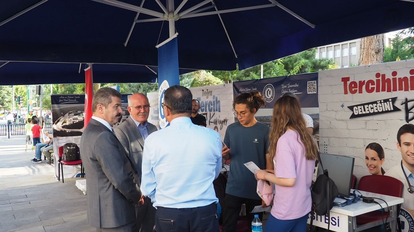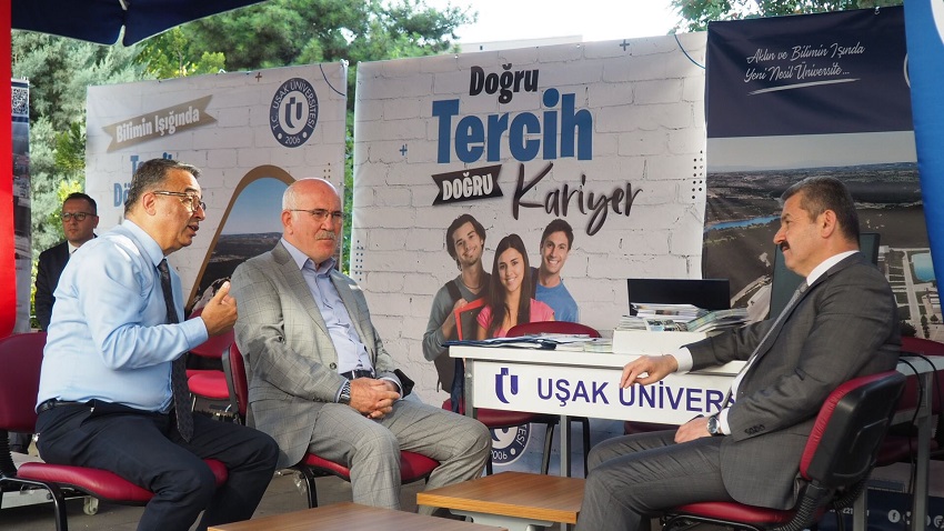 Uşak Üniversitesi Rektörü Prof. Dr. Ekrem Savaş, Vali Dr. Turan Ergün ile birlikte, Uşak Tiritoğlu Parkında kurulan ‘Uşak Üniversitesi Tercih Standını’ ziyaret etti.