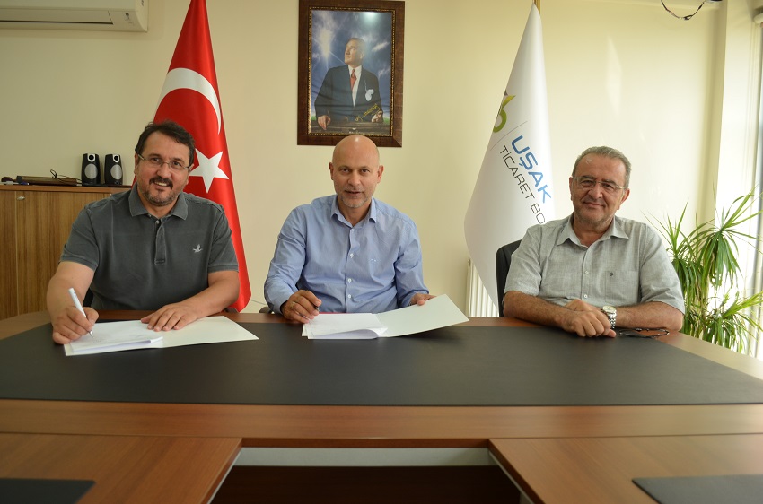 Protokole Ziraat Fakültesi Dekanı Prof. Dr. Mehmet Fatih Çelen ve Uşak Ticaret Borsası Yönetim Kurulu Başkanı Mustafa Sezer imza attı.