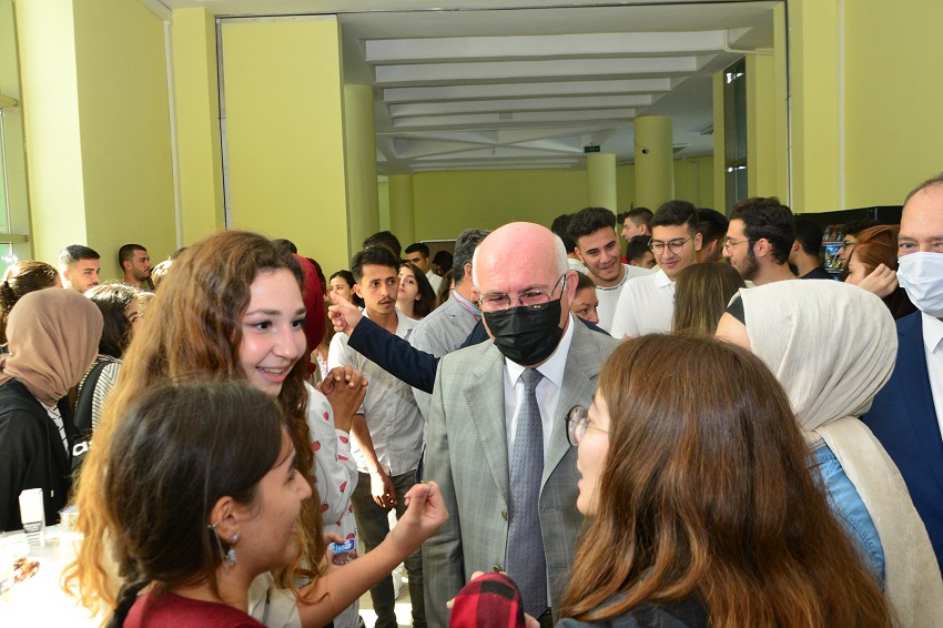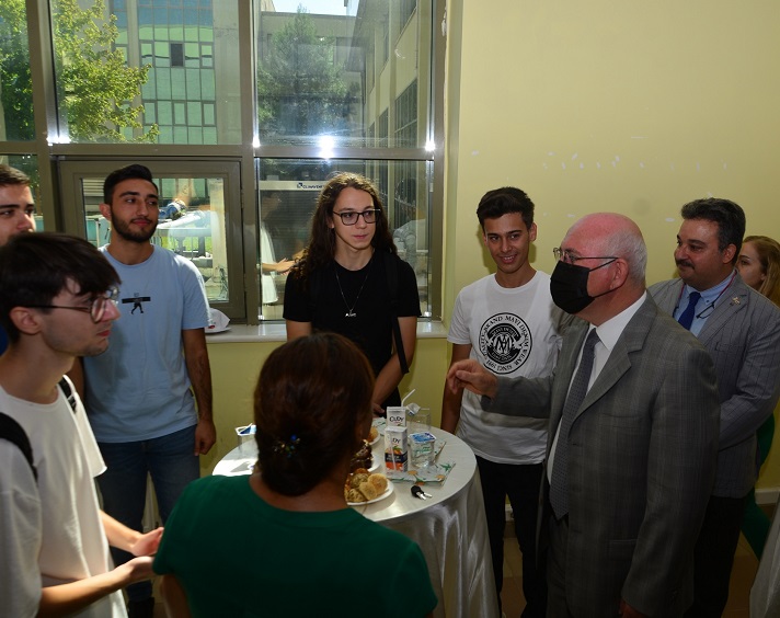 Tanıtımın ardından fuaye alanında, ‘Hoca-Öğrenci’ etkinliği yapıldı. Etkinliğe katılan Rektör Prof. Dr. Ekrem Savaş, Tıp Fakültemizin yeni öğrencileriyle sohbet etti.