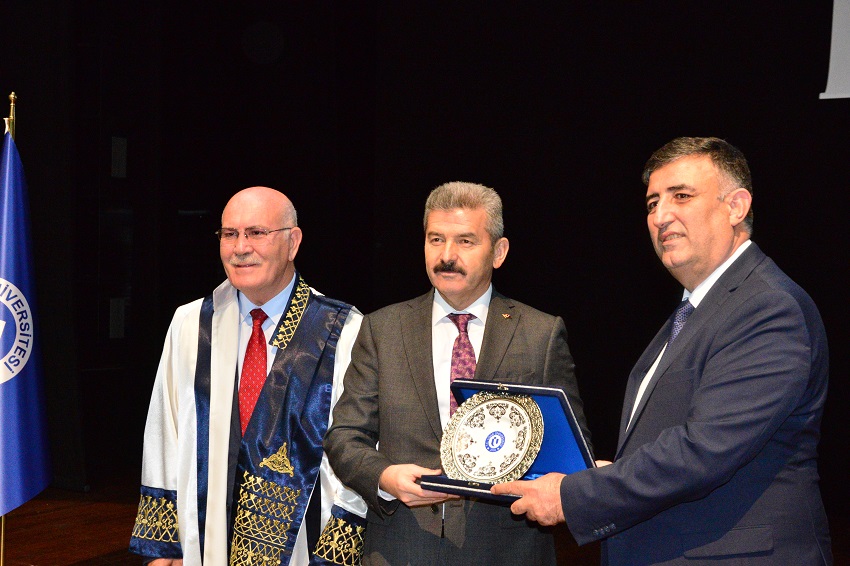 Program sonunda Uşak Valisi Dr. Turan Ergün ve Rektör Prof. Dr. Ekrem Savaş, Prof.Dr. Mantar’a günün anısına teşekkür plaketi takdim ettiler.