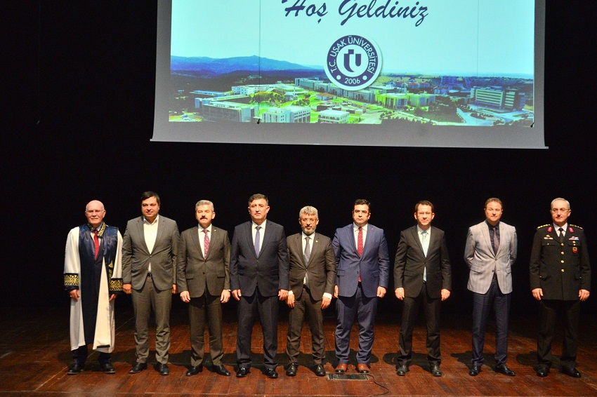 Recep Tayyip Erdoğan Kongre ve Kültür Merkezinde düzenlenen açılış törenine, Uşak Valisi Dr. Turan Ergün, Uşak Milletvekili ve TBMM Güvenlik ve İstihbarat Komisyonu Başkanı Av. Mehmet Altay, Belediye Başkanı Mehmet Çakın, Cumhuriyet Başsavcısı Bozan Çevik, Adalet Komisyonu Başkanı İsmail Deniz, Rektör Prof. Dr. Ekrem Savaş, İl Emniyet Müdürü Mesut Gezer, İl Jandarma Komutanı J. Kd. Albay Fahri Semiz, fakülte dekanları, enstitü ile meslek yüksekokulu müdürleri, çok sayıda protokol üyesi, akademisyenler ve öğrenciler katıldı.