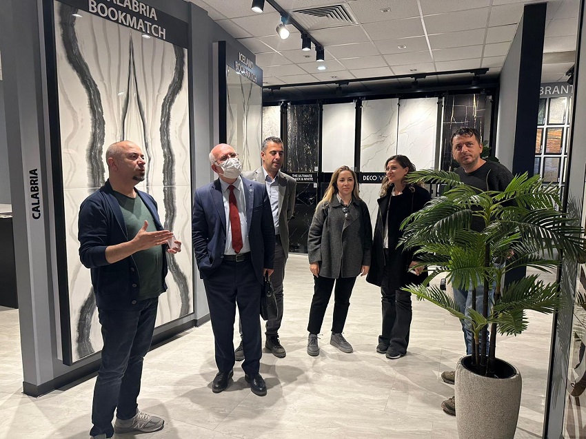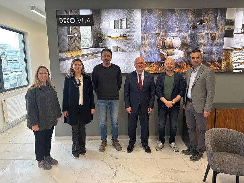 Eskişehir ziyaretinin son ayağında Decovita Seramik firmasında incelemelerde bulunuldu. DTS Tasarım Merkezi Danışma Kurulunda da yer alan Decovita Tasarım Müdürü Erdal Tusun’un ev sahipliğinde gerçekleştirilen görüşmede ortak tasarım faaliyetleri ve projeler hakkında görüşmeler yapıldı.