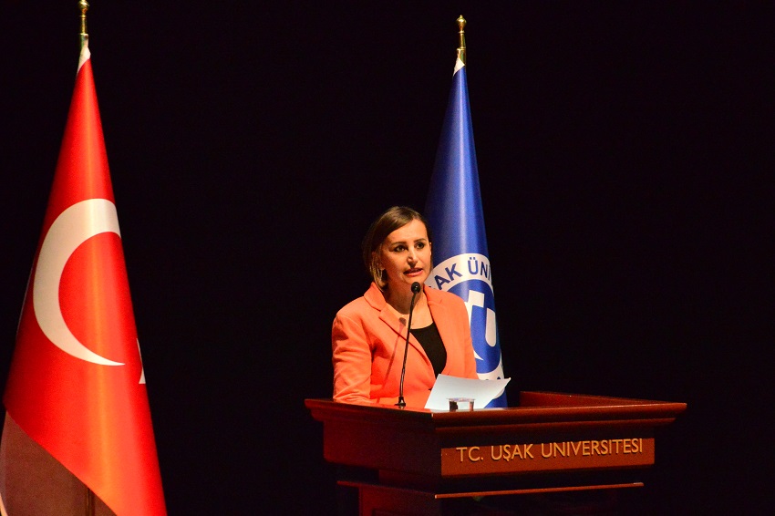 Uşak Üniversitesi Recep Tayyip Erdoğan Kongre ve Kültür Merkezi’nde yapılan Kadına Yönelik Şiddeti Önleme Günü etkinliğinin açılışını Kadın ve Aile Çalışmaları Araştırma ve Uygulama Merkezi Müdürü Dr. Öğr. Üyesi Dilek Erol yaptı. Erol, şiddetin kültürel bir olgu olduğunu belirtirken, topyekûn bir mücadele gerektiğini belirtti ve etkinliğe destek sunan kurumlara teşekkür etti.