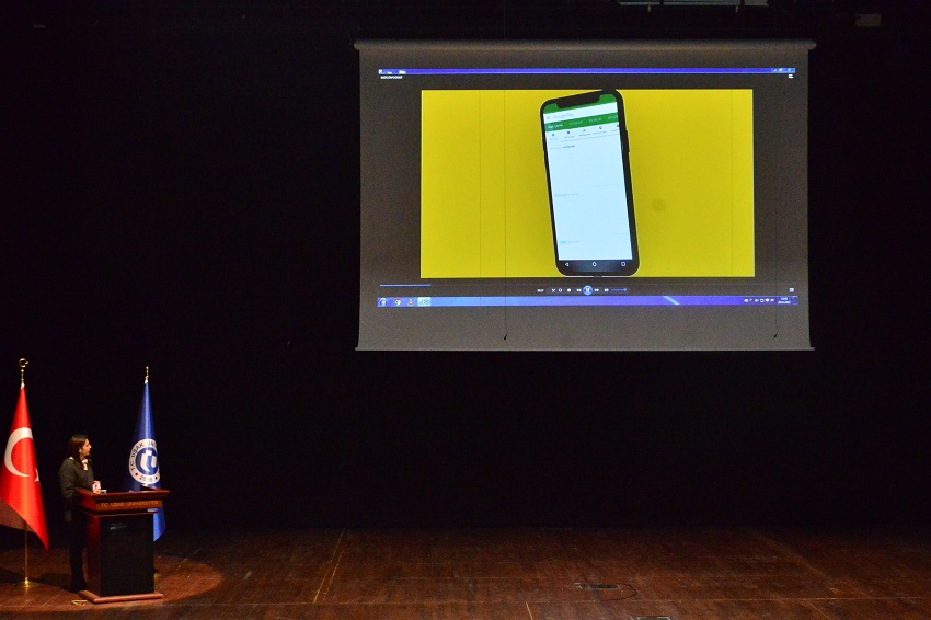 Uşak İl Emniyet Müdürlüğü Asayiş Şube Aile İçi Kadına Şiddetle Mücadele Büro Amir Yardımcısı Eda Semiz yaptığı konuşmada Kadına Destek Uygulamasını (KADES) tanıtarak bir kadının şiddete uğraması durumunda neler yapması gerektiği hakkında bilgi verdi.