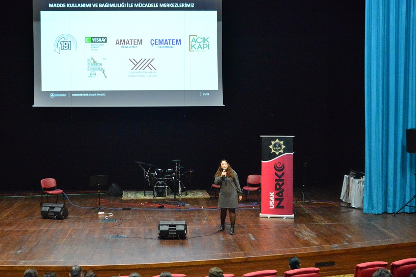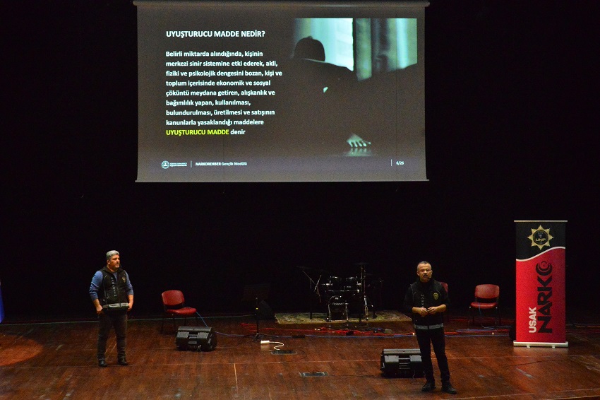 Uşak İl Emniyet Müdürlüğüne bağlı Narkotik Şube Müdürlüğü bağımlılık ile mücadele için Uşak Üniversitesi Recep Tayyip Erdoğan Kongre ve Kültür Merkezi’nde öğrencilerle bir araya geldi.