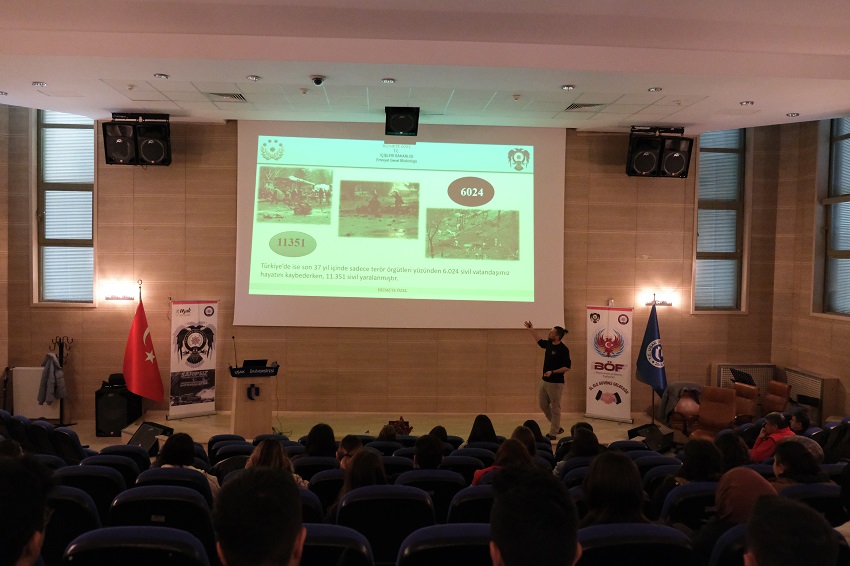 Mustafa Kemal Paşa Amfisinde gerçekleşen konferansın amacı gençleri terör örgütlerinin propagandaları hakkında bilgilendirmek ve propagandaya maruz kalındıklarında neler yapacaklarını anlatmaktı. Emniyet yetkilileri tarafından Türkiye’de aktif olarak faaliyet yürüten terör örgütleri ve onların eleman devşirme yolları anlatıldı. Emniyet yetkileri, gençleri özellikle arkadaş seçimi ve gittikleri mekânlar konusunda uyardı.