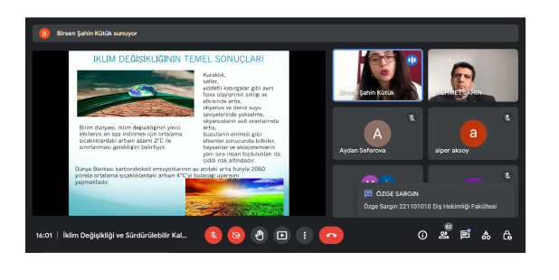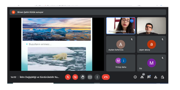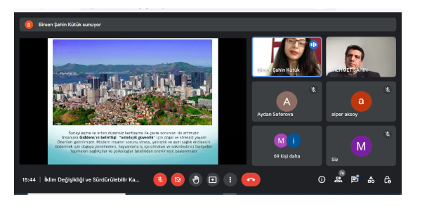 Uşak Üniversitesi Enerji, Çevre ve Sürdürülebilirlik Uygulama ve Araştırma Merkezi Müdürlüğü tarafından düzenlenen “İklim Değişikliği ve Sürdürülebilir Kalkınma” adlı konferans 16 Aralık 2022 tarihinde çevrimiçi olarak gerçekleştirildi. Konferansta Hacettepe Üniversitesi Edebiyat Fakültesi Sosyoloji Bölümü Öğretim Üyesi Prof. Dr. Birsen Şahin Kütük bir sunum yaptı.
