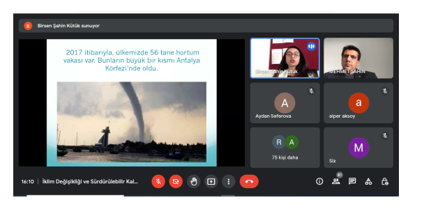 Prof. Dr. Kütük yaptığı konuşmada iklim değişikliğinden, iklim değişikliği ile sürdürülebilir kalkınma arasındaki bağlantılardan ve iklim değişikliğine uyum konularından bahsetti.