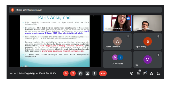 Plansız sanayileşmenin ve düzensiz kentleşmenin artmasıyla çevre ve iklim sorunlarının da arttığını dile getiren Prof. Dr. Birsen Şahin Kütük, son yıllarda bu sorunların dünyada daha görünür hale geldiğinden bahsetti. Bu sorunların daha da görünür olmasından dolayı, çevre ve iklim değişikliği konusunda bazı adımların atıldığını söyledi. Çevre ve iklim konusunda atılan bu adımlardan birisinin 1997’de gelişmiş ve gelişmekte olan dünya ülkeleri tarafından imzalanan ve 2005’te yürürlüğe giren Kyoto Protokolü olduğunu belirten Prof. Dr. Kütük, diğerinin ise Paris anlaşması olduğunu ifade etti.