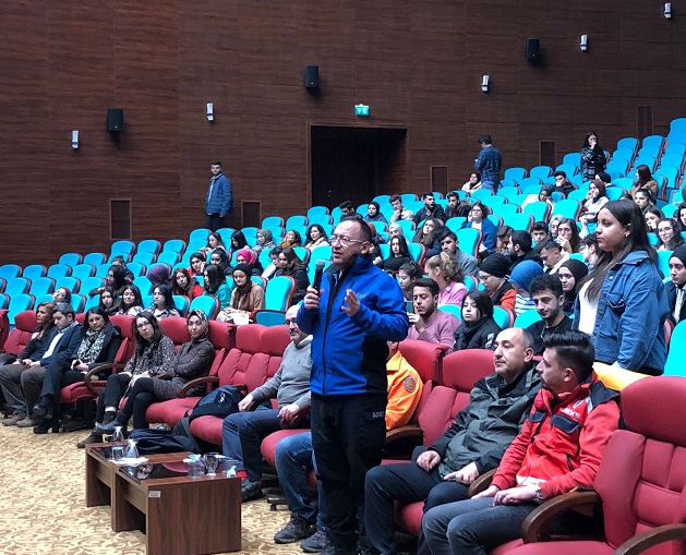 UMKE Kurucu Hekimi Dr. Türkay Esin, UMKE’nin kuruluşunu anlatarak afetlere hazırlıklı olmanın önemini dinleyicilerle paylaştı. Afet anında yapılanlar kadar afet öncesinde yapılması gerekenlerin de önemli olduğunu söyleyen Esin, “Hazır olmadığınız her şey afettir. Hazırlıklı olmadığımız takdirde küçücük bir aksaklık bizim için afet olabilir. Evimize almadığımız yangın söndürme tüpü, kilitlediğimiz yangın merdiveninin kapısı, binanın bodrumunda bulunan jeneratörler küçük ayrıntılar gibi görünse de afet anında hayat kurtarıcı olabiliyor” dedi.