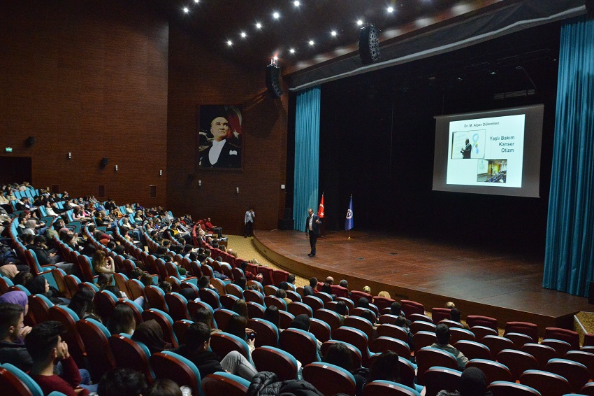 Öğrencilerin yoğun katılımıyla gerçekleşen etkinlikte öğrencilerimiz Dr. Alper Dölenmen’e özel sektörde iş imkânları ve özel sektörde hastane yöneticiliği üzerine sorular yöneltme imkânı buldu.