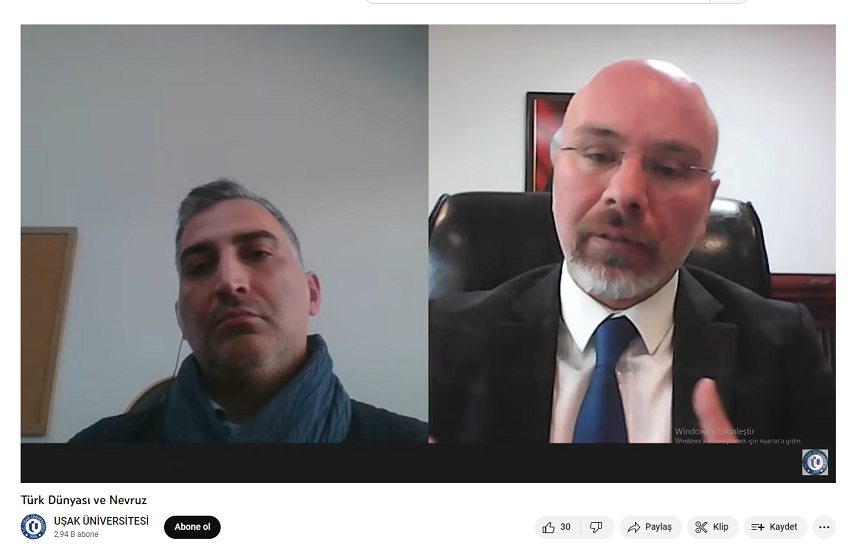 Dünyanın farklı coğrafyalarında çeşitli etkinliklerle kutlanan Nevruz Bayramı dolayısıyla Uşak Üniversitesinde “Türk Dünyası ve Nevruz” etkinliği gerçekleştirildi. Uşak Üniversitesinin YouTube kanalından canlı yayınlanan konferansta Uşak Üniversitesi Fen Edebiyat Fakültesi Çağdaş Türk Lehçeleri ve Edebiyatları Bölümünden Doç. Dr. Erhan Solmaz, nevruzun anlamını ve tarihsel gelişmesini anlattı.