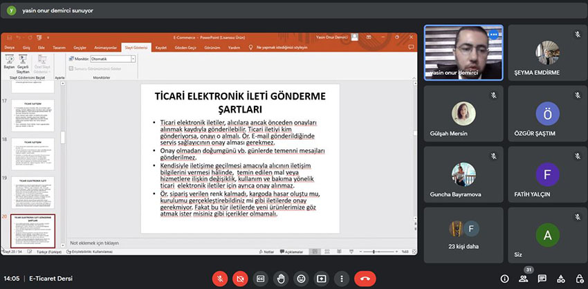 Uşak Üniversitesi Teknoloji Transfer Ofisi (UTTO)’nin 23 Mart’ta öğrencilere yönelik çevrimiçi düzenlediği “E-Ticaret Hukuku Eğitimi”nde Av. Yasin Onur Demirci katılımcılarla buluştu.