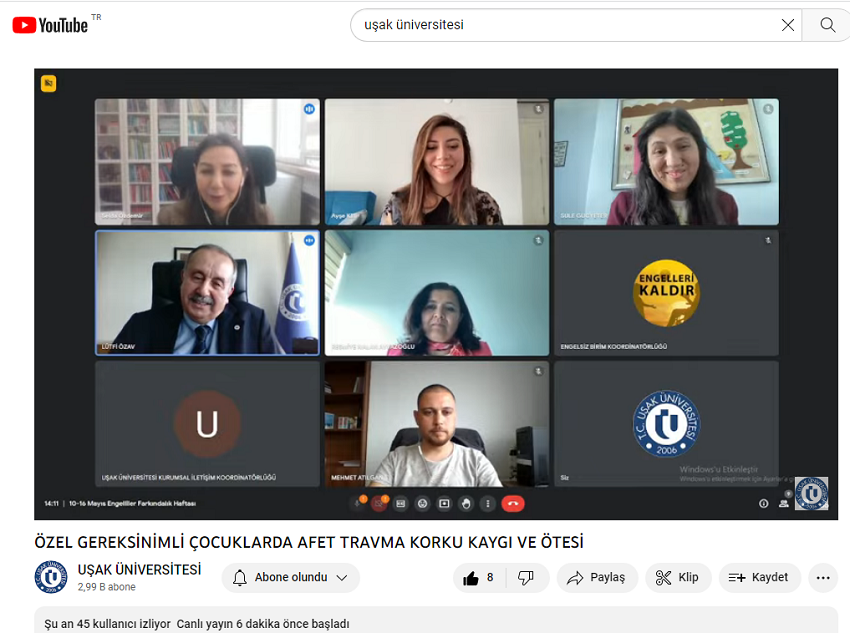 Uşak Üniversitesi Engelsiz Birim Koordinatörlüğü tarafından 10-16 Mayıs Engelliler Farkındalık Haftası etkinlikleri kapsamında Uşak Üniversitesi Youtube kanalından canlı yayın yapıldı.