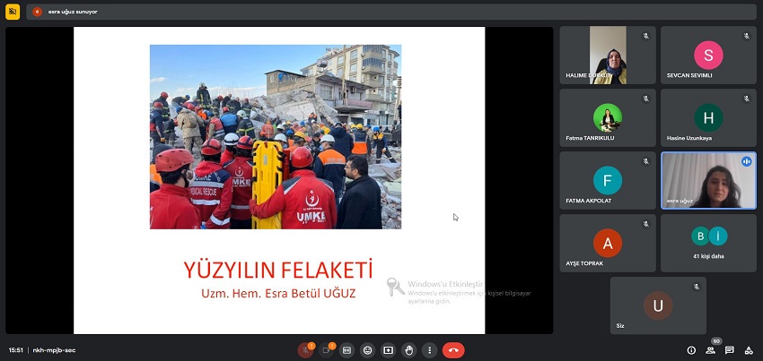 Açılış konuşmalarının ardından iki oturum halinde gerçekleşen sempozyumun ilk oturumunda Dr. Öğretim Üyesi Feyza Küçük başkanlığında “Cumhuriyetin 100. Yılında Hemşirelik” ana başlığı altında Doç. Dr. Biray Çakmak ‘Osmanlı Dönemi’nden Günümüze Sağlık Hizmetleri’ ve Dr. Öğretim Üyesi Fatma Tanrıkulu ise ‘Cumhuriyet Tarihinde Hemşirelik’ hakkında bilgi verdi. Sempozyumun ikinci oturumunda Öğretim Görevlisi Halime Durkut başkanlığında “Afetler ve Hemşirelik” ana başlığında, Dr. Öğretim Üyesi Sevcan Sevimli ‘Afetlerde Hemşirelik’ hakkında sunum yaptı. Ardından Uzman Hemşire Esra Betül Uğuz, Hemşire Fatih Mehmet Dere, Sağlık Bilimleri Fakültesi Hemşirelik Bölümü 2. Sınıf öğrencisi Hasine Uzunkaya ile 4. Sınıf öğrencisi Kamil Özen, affet bölgesinden hemşire ve öğrenci deneyimlerini aktardılar.