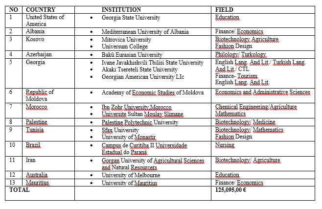 Uşak University was awarded a total grant of €125,095 for 13 countries from 8 different regional categories within the scope of 2023 Call for Proposals Key Action 1 - Student and Staff Mobility Projects with Third Countries Not Associated with the Program (KA171).