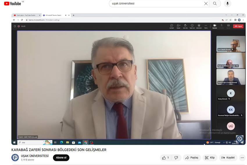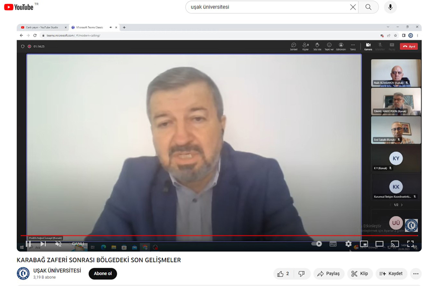 Uşak Üniversitesi Azerbaycan Kültürünü Tanıtma Topluluğu tarafından “Karabağ Zaferi Sonrası Bölgedeki Son Gelişmeler” isimli çevrimiçi konferans Uşak Üniversitesi Youtube kanalında canlı olarak yayınlandı.